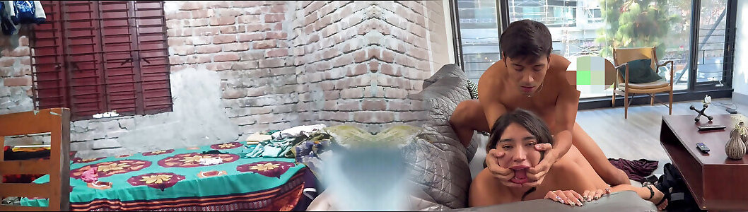 The step brother made his step cousin lie down on the mat and inserted his thick cock into her pussy and fucked her hard