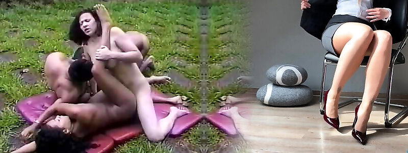 Bi threesome - stepdad seduces stepdaughter and her boyfriend during training for passionate sex