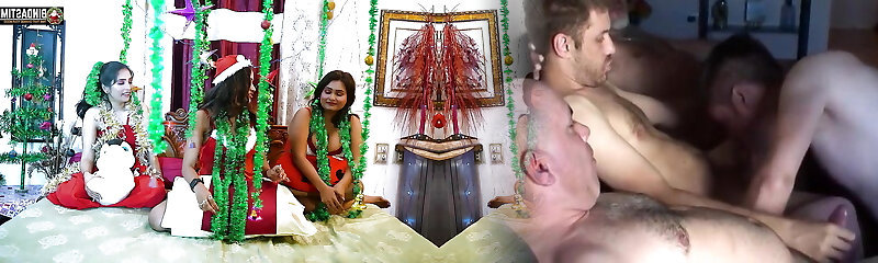 Desi Pornstars Orgy X-mass Special Gang-fuck Fucked with BBW Sucharita and StarSudipa and 4 Good-sized Manstick ( Hindi Audio )