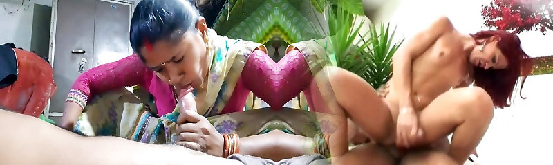 Super-fucking-hot indian desi village bhabhi was celebrate Holi with dever on clear Hindi audio